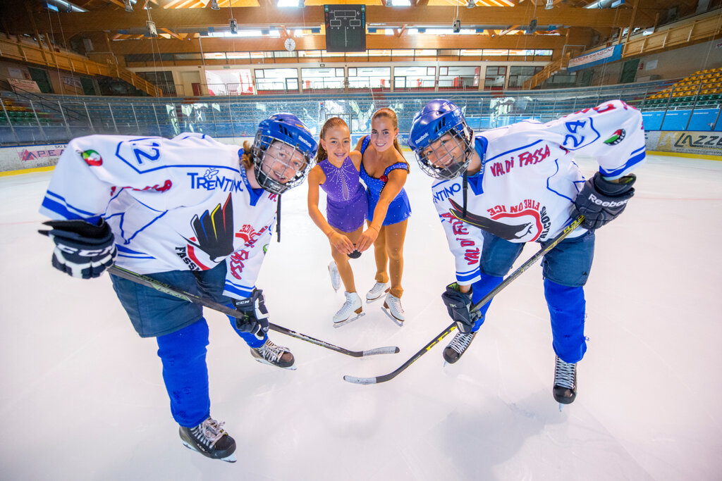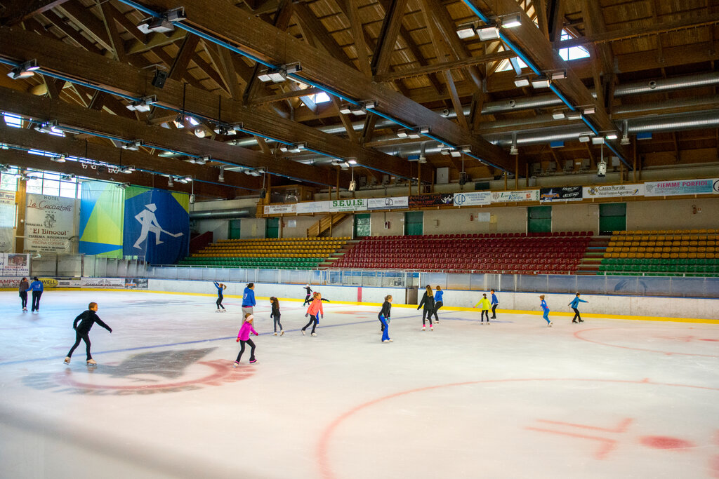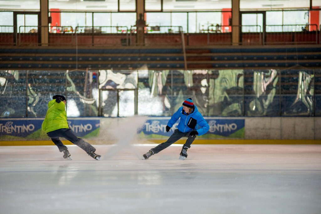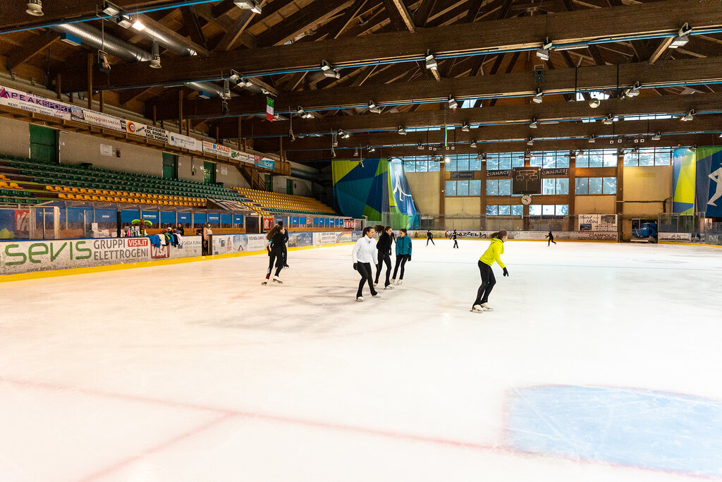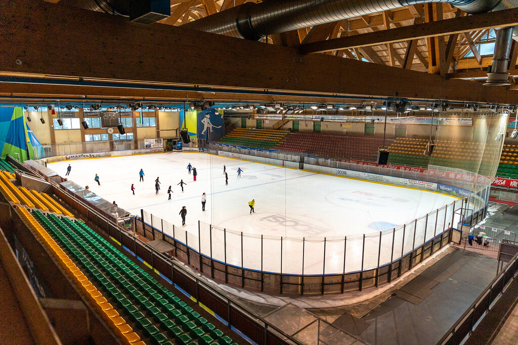Die weiße, glatte und glänzende Platte lädt dazu ein, mit Schwung und Leichtigkeit durchbohrt zu werden. Im Indoor-Eisstadion "Gianmario Scola" in Alba di Canazei steht eine fabelhafte olympische Piste (30 x 60 m künstlich gekühlt) Anfängern und allen, die Pirouetten und Arabesken beherrschen, zur Verfügung, die im Rhythmus der Musik auf der Klinge gespielt werden. Die 12.000 m ² große Struktur bietet Platz für bis zu 3.500 Personen und ermöglicht es Ihnen, Schlittschuhe zu mieten und auch einige Lektionen zu nehmen, um die Grundtechnik zu erlernen oder den Stil zu verbessern. Die Begleitpersonen können hinter den Balustraden auf den Tribünen zusehen oder sich in der Bar der Eishalle aufwärmen.