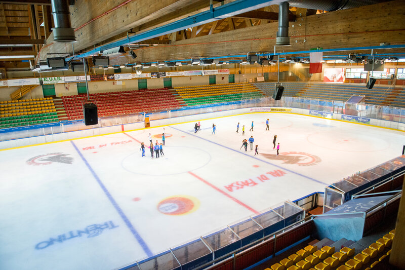 Die Arena ist die Heimat der Fassa Falcons, der lokalen Mannschaft, die seit Jahren in der Europameisterschaft der Alps Hockey League spielt. In den Jahren 1987 und 1994 fand in der Halle die Eishockey-Weltmeisterschaft der Gruppe B statt, während 2013 die Spiele und die Abschlusszeremonie der 26. Winter-Universiade stattfanden. Unvergesslich sind auch die Eiskunstlaufnächte, die Fassa Ice Gala mit international bekannten Gästen, darunter Carolina Kostner, Samuel Contesti, das Paar Barbara Fusar Poli und Maurizio Margaglio.