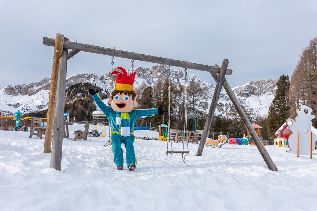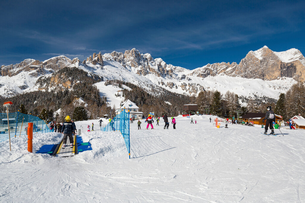 Die ersten Rutschen im Schnee finden auf den privaten Schulcamps am Ciampedie und am Carezza statt, die mit bequemen Laufbändern für den Aufstieg ausgestattet sind. Im Ciampedie gibt es auch einen schönen Kinderpark, in dem die Kinder spielen und Spaß an der frischen Luft haben können, zwischen magischen Schlössern, Rutschen und Schaukeln. Eintritt stündlich, halber oder ganzer Tag, wöchentlich (inklusive Mittagessen in der Hütte). Animation und Betreuung für Kinder ab 3 Jahren. Schneemobiltour (gegen Gebühr). Das Gebiet ist auch für Familienmitglieder/Nicht-Skifahrer leicht erreichbar.
