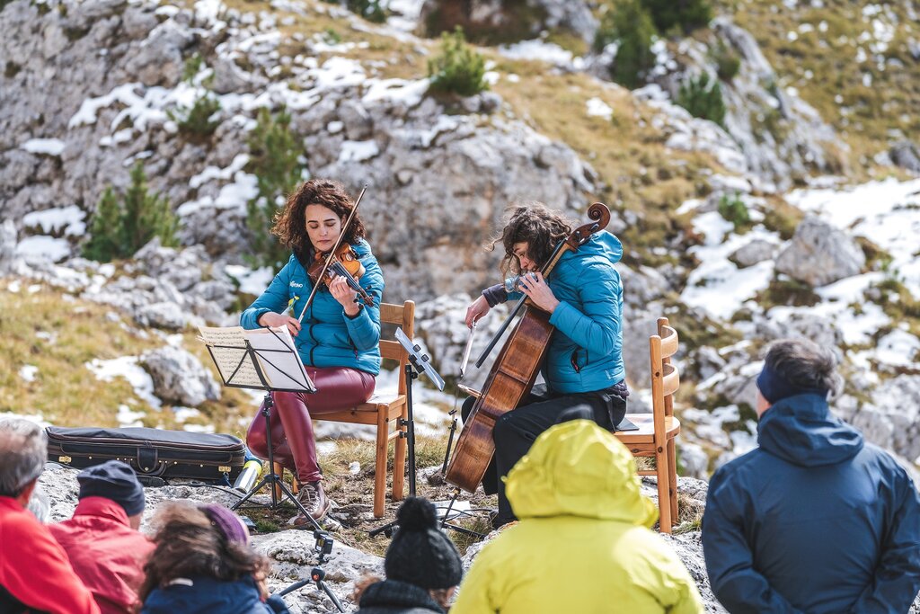 Seit 1995 ist I Suoni delle Dolomiti das Festival für klassische, Jazz- und zeitgenössische Musik in den Bergen, das bei Sonnenaufgang beginnt, den Zenit begleitet und kurz vor Sonnenuntergang endet. Während die Musiker ihre Instrumente stimmen, erobern Sie den Gipfel, zu Fuß oder mit der Seilbahn. Und wenn Sie möchten, können Sie mit ihnen zu einer besonderen Wanderung aufbrechen, bei der die Musik zu einem persönlichen "Zeitgenuss" wird. Mit Ihnen sind Bergführer, die Ihnen den Weg weisen.