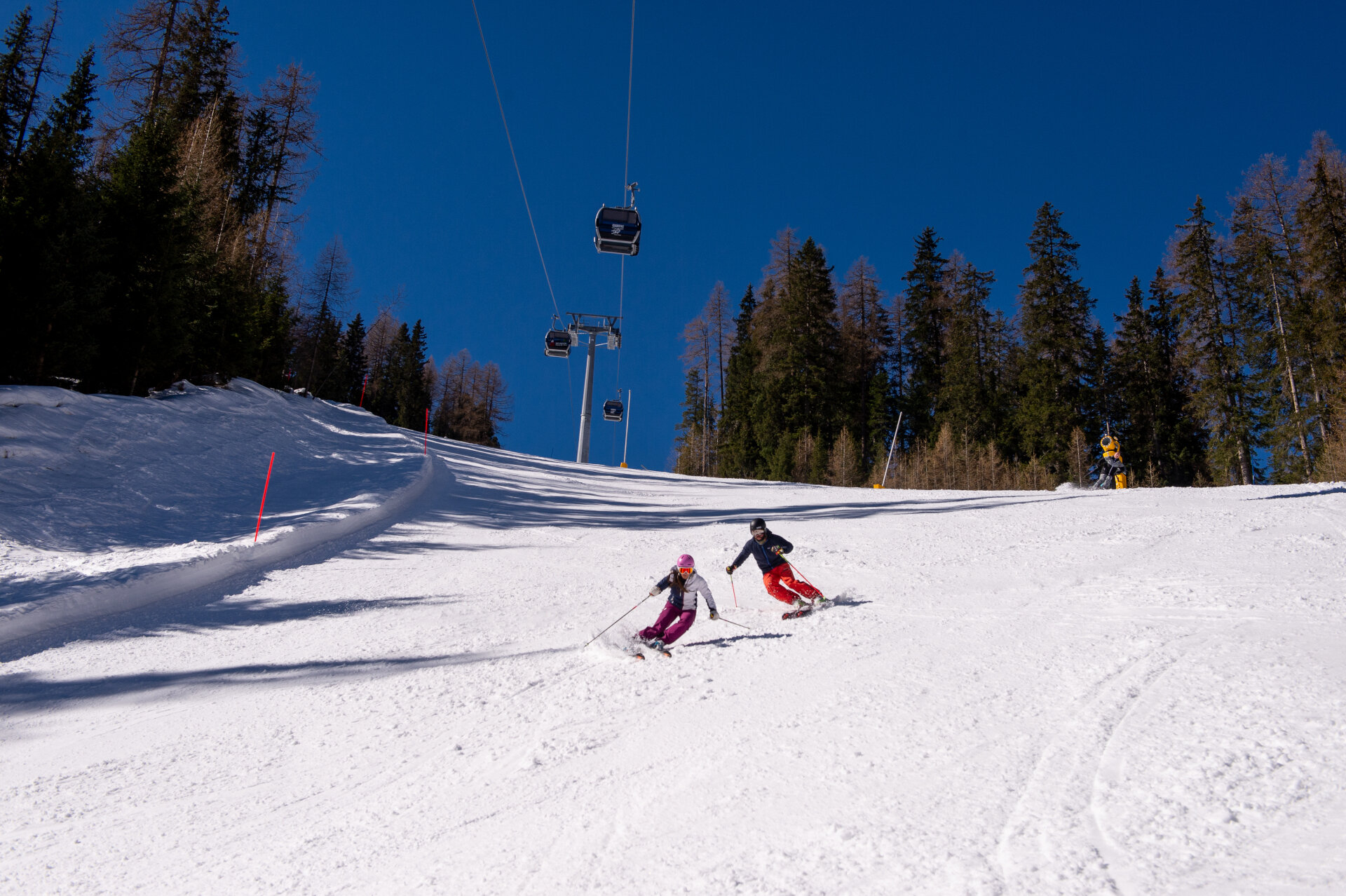 Eine anspruchsvolle schwarze Piste mit 40 m Breite und einer Exposition, die den ganzen Winter über hervorragende, kompakte Schneeverhältnisse garantiert. Eine Panorama-Gondelbahn bringt Sie in wenigen Minuten vom Zentrum von Alba zur Bergstation am Ciampac. Dort angekommen, werden Sie sofort von der spektakulären Aussicht auf die Sellagruppe, den Langkofel und die Marmolada überwältigt, bevor Sie die anspruchsvolle Abfahrt in Angriff nehmen: Über 2 km Länge mit einem Höhenunterschied von 643 m, gespickt mit aufregenden Steilhängen, die selbst die Beine erfahrener Skifahrer fordern. Der letzte Abschnitt wird mit einer weiten Kurve, die immer noch durch den Wald führt, vor dem finalen Schuss etwas sanfter.