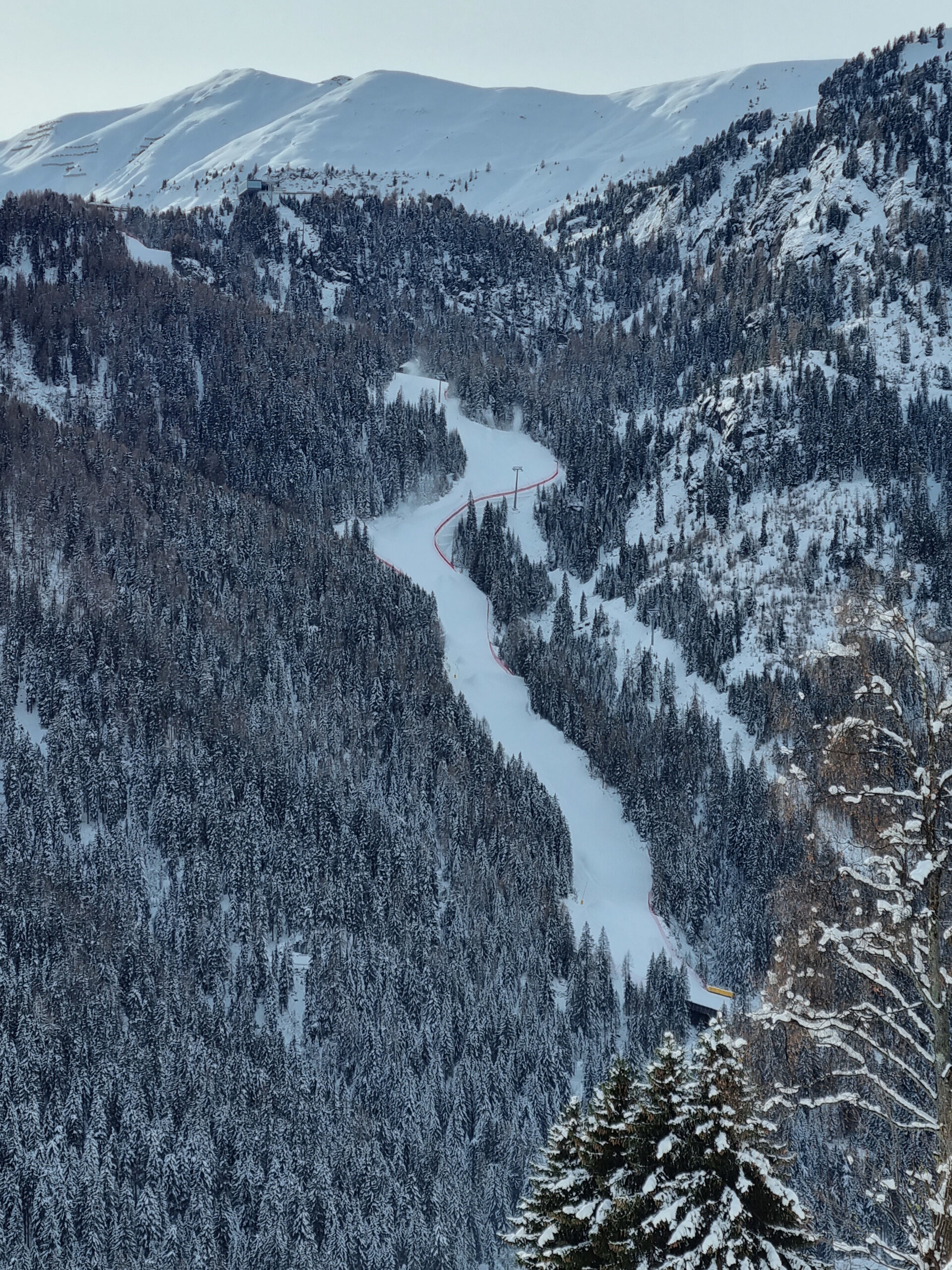 Die Verlockung dieser Strecke ist groß: Nach der anfänglichen Umarmung der Gipfel, vom Piz Boè bis zur Crepa Neigra, tauchen Sie in einen Serpentinenwald ein, der fast steil nach Alba di Canazei abfällt. Bereits an der ersten Wand spüren Sie, was der Schnee zu bieten hat: Sie finden Ihren Rhythmus, spüren, wie der Körper gleitet und den richtigen Druck auf den Schnee ausübt, um Steigungen von bis zu 56 % zu überwinden. Schließlich gleiten Sie in einer weiten Kurve aus dem Wald heraus und direkt zu den Liften ins Ziel.