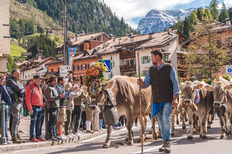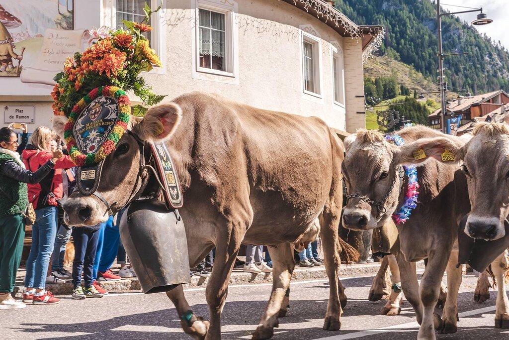 Autumn is the season of the most precious fruit harvests, those that smell of the woods. While the Dolomites explode with scents and colours, in Val di Fassa autumn is above all the month of return. From the high altitude pastures, the shepherds bring the best of the cheeses prepared with the milk of the summer flowers. The cows, who follow them, parade in a procession decorated like queens and, in the villages, people sing, dance, and celebrate! Before the cold season, as in the past, each community celebrates its new year of light and the squares are adorned with products and recipes that keep the intensity of the flavour intact.